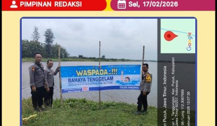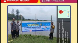 LAMONGAN Giat pemasangan banner himbauan larangan bermain di Waduk sungai di wilayah Polsek sukodadi.