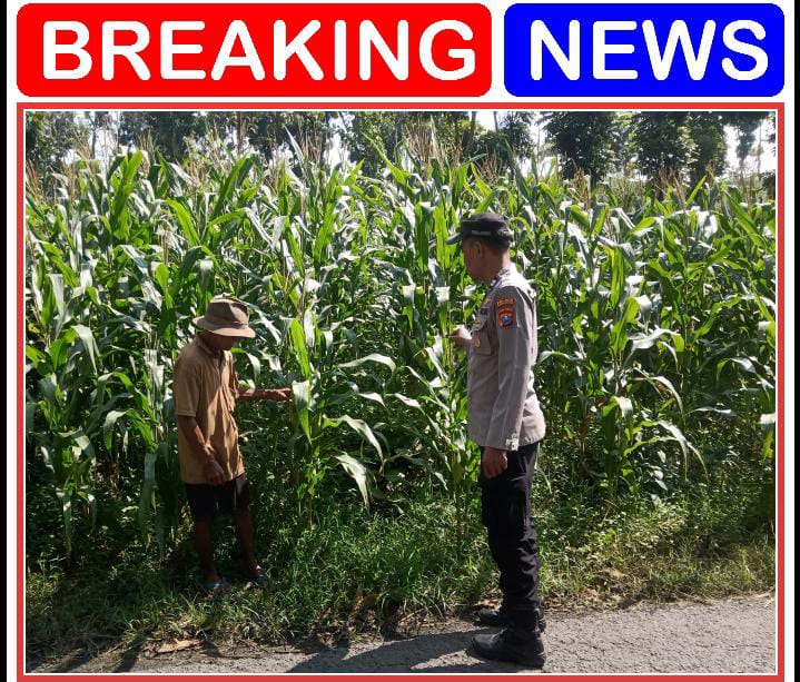 Polmas / Bhabinkamtibmas Desa Bluluk, Kec. Bluluk, Polsek Bluluk, Polres lamongan melaksanakan pengecekan dan pendampingan pada warga Dalam menanan tanaman pangan pangan yang ditanam dilahan ladang.pekarangan.
