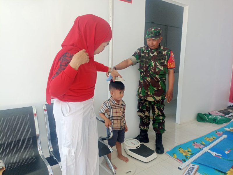 TAKALAR – kupastuntas86.com|Peran Babinsa Koramil 1426-03/Galut, Kodim 1426/Takalar Desa Aeng Batu-batu Serka Agus Haryanto, laksanakan pendampingan kegiatan Posyandu pada penimbangan Balita dan pemeriksaan kesehatan untuk mencegah terjadinya Stunting di wilayah Desa Aeng Batu-batu, Kec. Galut Kab. Takalar. Kamis, (14/08/2025).