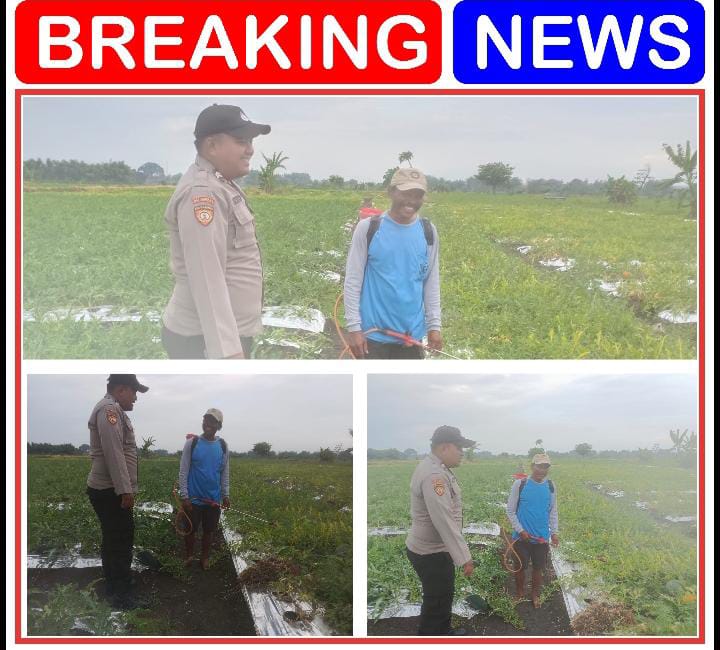 Polmas / Bhabinkamtibmas Desa Smnerbanjar Kec. Bluluk, Polsek Bluluk, Polres lamongan melaksanakan pengecekan dan pendampingan pada warga dalam menanan tanaman Jagung yang ditanam dilahan persawahan, oleh warga Desa Sumber banjar kec Bluluk