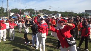 Peserta Senam zumba yang gerakannya penuh energik diberikan sembako berupa minyak goreng, hal ini menambah semangat bagi peserta senam zumba menambah semangat.