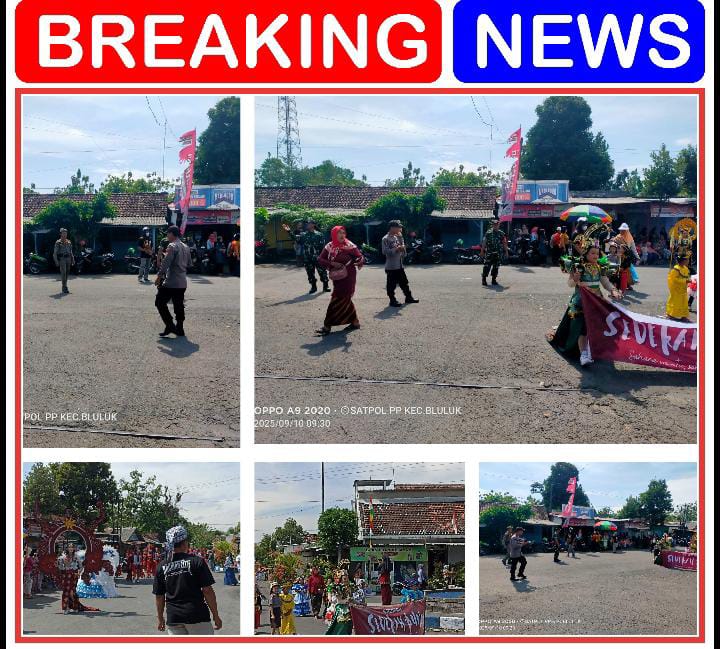 Pada hari Rabu tanggal 10 September 2025 mulai pukul 08.00 Wib Selesai Kapolsek beserta anggota polsek Bluluk melaksanakan kegiatan pengamanan dan pengaturan lalu lintas jalur Pawai Budaya dlm rangka sedekah bumi Dsn. Kauman Ds. Bluluk Kec. Bluluk.
