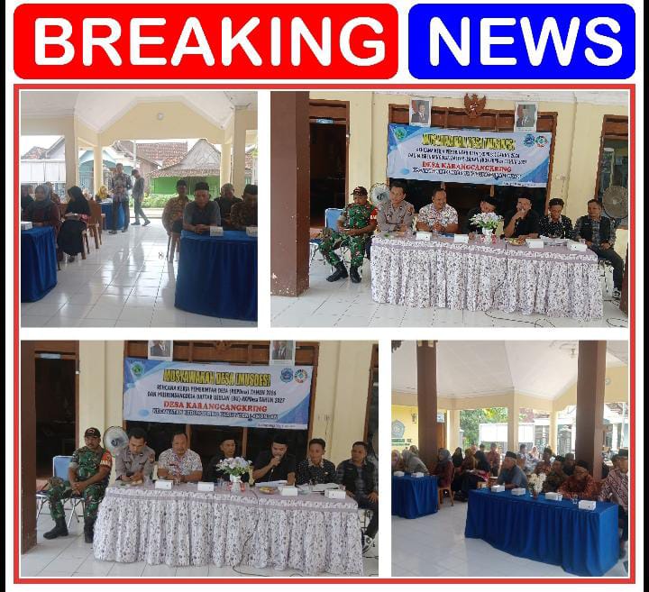 Petugas menghadiri giat musdes dalam rangka penyusunan rencana kerja pemerintah desa (RKPD) Tahun 2025 Dan musyawarah perencanaan pembangunan desa musrenbangdes tahun 2027, kegiatan Musdes di hadiri kurang Lebih 50 Warga Desa Karangcangkring.