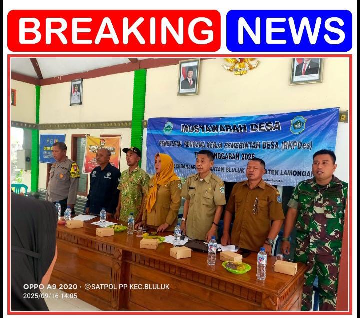 Pada hari Selasa tanggal 16 September 2025, sekira Pukul 13. 30 WIB s/d selesai. Musyawarah desa, penetapan rencana kerja pemerintah desa( RKPDes) th anggaran 2026?, Desa. Sumberbanjar, Kec. Bluluk, Kab. Lamongan. Berjalan aman, lancar dan kondusif.