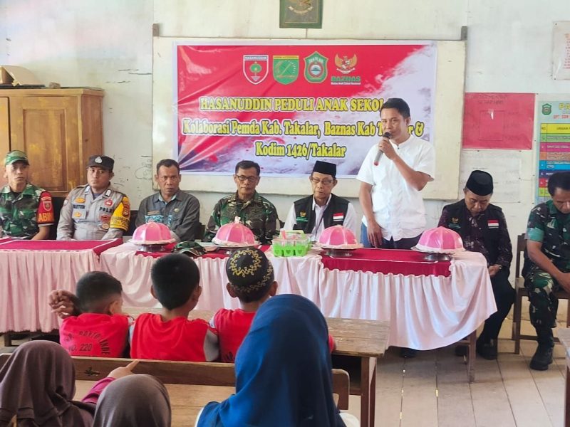 TAKALAR – kupastuntas86.com|Dalam rangka mendukung Program Hasanuddin Peduli Anak Sekolah, Kodim 1426/Takalar bekerjasama dengan Pemda Takalar menggelar kegiatan pemberian makanan bergizi gratis, dan alat tulis kepada siswa-siswi SD Negeri 220 Bontocinde Kelurahan Patte’ne Kecamatan Polongbangkeng Selatan Kabupaten Takalar. Jum’at (19/09/2025).