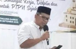 Peringatan Maulid Nabi Besar Muhammad SAW Jum’at (19-09-2025) dilaksanakan di halaman mesjid Nurul Huda Kebun Tanjung Garbus – Pagar Merbau PTPN4 Regional 2 dengan TEMA : ” MENELADANI AKHLAK NABI MUHAMMAD SAW UNTUK MEMBANGUN INTEGRITAS SEMANGAT KERJA DISIPLIN DAN KEBERSAMAAN UNTUK PTPN SEJAHTERA ” Kegiatan berjalan lancar penuh semangat dan cetiah , selaku ketua panitia di pimpin oleh Heri Syahfrial Askeb rayon Pagar Merbau.