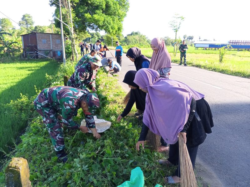 Ciptakan Lingkungan Bersih, Koramil 1426-06/Mapsu Ajak Masyarakat Kerja Bakti Bersihkan Lingkungan