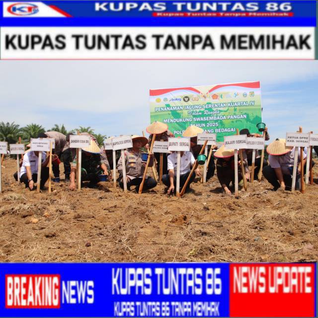 SERGAI | KUPASTUNTAS86.COM – Pada hari Rabu tanggal 8 Oktober 2025 sekira pukul 09.20 WIB bertempat di lahan perkebunan jagung Polres Serdang Bedagai Dusun I Desa Firdaus Kec. Sei Rampah Kab. Serdang Bedagai dilaksanakan kegiatan Penanaman jagung serentak Kuartal IV dalam rangka mendukung swasembada pangan tahun 2025 Polres Serdang Bedagai secara Virtual melalui Zoom Meeting.