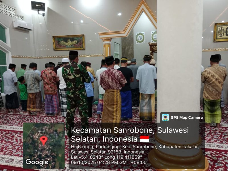 TAKALAR – kupastuntas86.com|Untuk menjaga silaturahmi dan meningkatkan keimanan kepada Allah SWT, Personel Koramil 1426-06/Mapsu, Kodim 1426/Takalar melaksanakan safari shalat subuh berjamaah dengan menggilir tiga masjid setiap subuh, di wilayah Kecamatan Mapsu dan Sanrobone Kabupaten Takalar. Kamis, 09/10/2025.