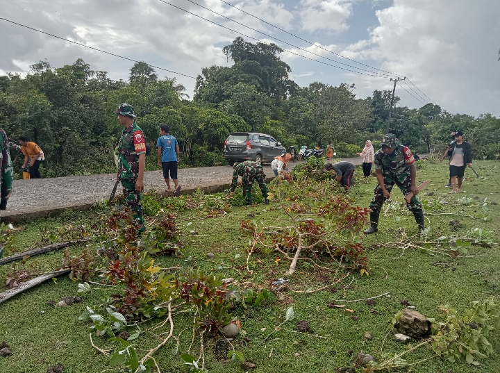 Kerja bakti dalam rangka memelihara kekompakan dan kemanunggalan TNI-Rakyat, begitu nampak terlihat dan benar-benar nyata dalam kegiatan di wilayah teritorial Koramil. Hal tersebut terbukti saat anggota Koramil dengan sepenuh hati membantu warga masyarakat melaksanakan kerja bakti membersihkan saluran air dan rumput liar di pinggir jalan.