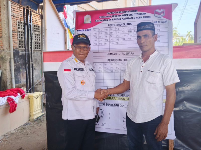 Aceh Timur – Abdul Manaf nomor urut 1 terpilih sebagai keuchik Gampong Titi Baroe, kecamatan Idi Rayeuk Kabupaten Aceh Timur.