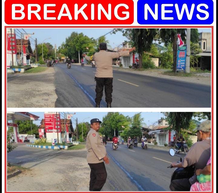 “Polsek brondong giat patroli pengaturan lalu lintas pagi untuk kegiatan penyebrangan masyarakat”