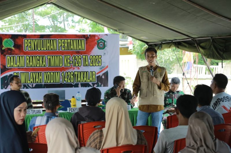 TAKALAR – kupastuntas86.com|Satgas TMMD ke 126 Kodim 1426/Takalar bekerja sama Dinas Pertanian/Peternakan Kabupaten Takalar memberikan penyuluhan pertanian kepada masyarakat Desa Tope Jawa Kecamatan Mangarabombang Kabupaten Takalar, Jum’at (17/10/2025).