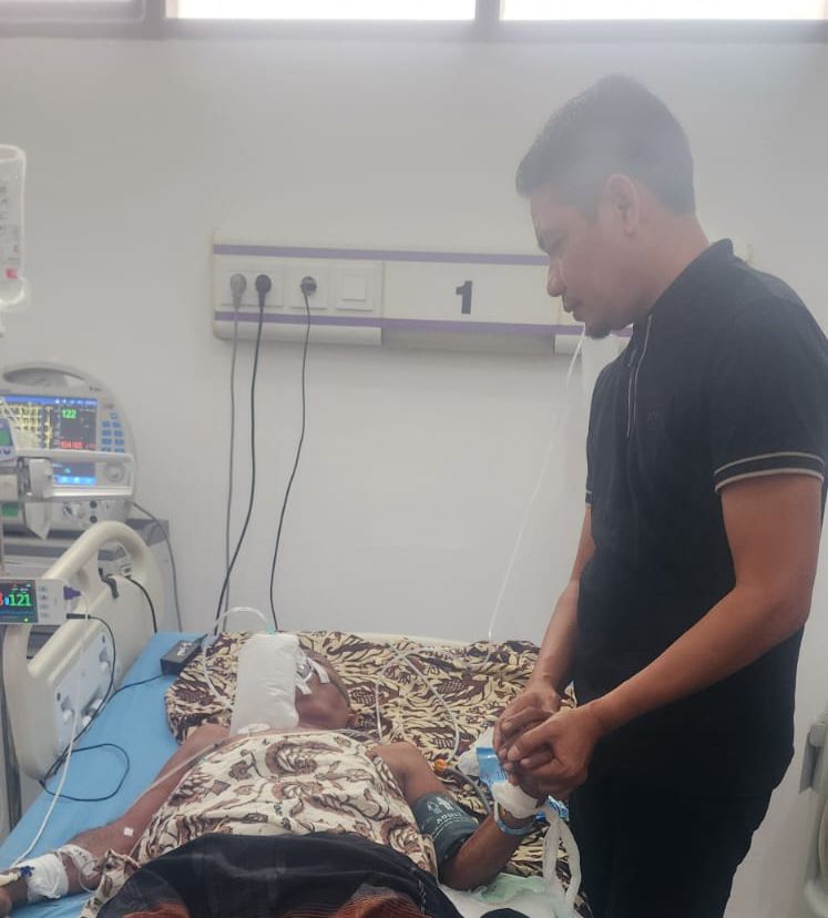 Kedatangan Wakil Bupati T. Zainal Abidin sontak membuat suasana ruang perawatan menjadi haru. Dengan wajah tenang dan penuh perhatian, beliau menggenggam tangan Saed yang tampak lemah.