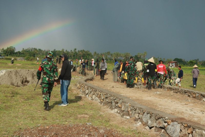 “Hari ini saya melakukan peninjauan dengan cara mengecek langsung perkembangan pengerjaan pembangunan program TMMD sudah berapa persen pengerjaannya, ”kata Dansatgas disela peninjauannya.