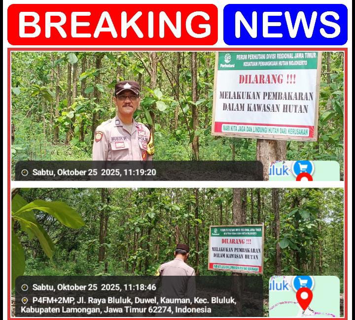 Pada hari Sabtu, tanggal 25 Oktober 2025, sekira pukul 11.00 Wib s/d Selesai, Petugas jaga Polsek Bluluk Melaksanakan patroli pemantauan bencana alam, tanah longsor dan pohon rawan tumbang pinggir jalan raya dan kawasan hutan serta menghimbau kepada warga sampaikan pesan – pesan Kamtibmas kepada masyarakat untuk menjaga lingkungan lestarikan alam dan lahan antisipasi cuaca ekstrim peralihan musim.
