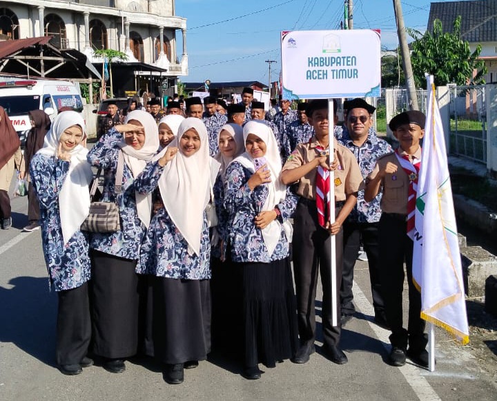 Aceh Timur, PIDIE JAYA – Peserta pawai ta’aruf kafilah MTQ Aceh, Kabupaten Aceh Timur mendapat sambutan hangat dari ribuan masyarakat Kabupaten Pidie Jaya dengan yel-yel Aceh Timur “Garang”, Sabtu (1/11/2025) pagi.
