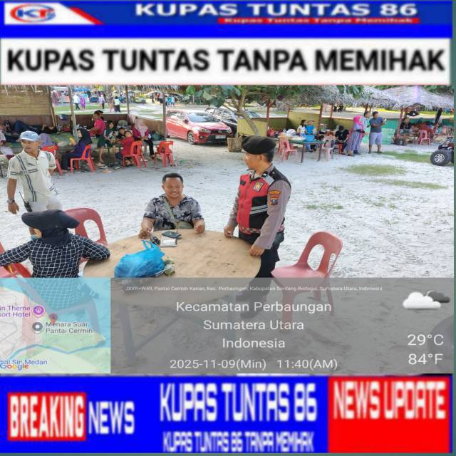 Serdang bedagai | Kupastuntas86.com – Personil Unit Pam Obvit Sat Samapta Polres Serdang Bedagai melaksanakan kegiatan pengamanan obyek vital yang dipusatkan pada sejumlah tempat pariwisata yang ramai dikunjungi masyarakat. Minggu Pagi (9/11/2025).