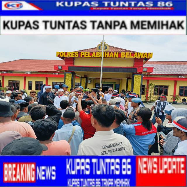 Belawan | Kupastuntas86.com – Sebagai bentuk solidaritas dan dukungan memberantas berbagai macam tindak pidana, kurang lebih sepuluh ribu masyarakat Belawan yang tergabung di dalam aliansi masyarakat Medan Utara menggugat mendatangi Mapolres Pelabuhan Belawan, Rabu (19/11) siang.