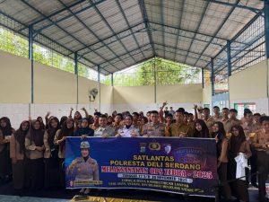 Deli Serdang | Kupastuntas86.com – Satuan Lalu Lintas Polresta Deli Serdang melaksanakan kegiatan sosialisasi keselamatan berlalu lintas kepada para pelajar dan guru SMA Swasta Harapan Bangsa Tanjung Morawa, Kamis (20/11/2025).