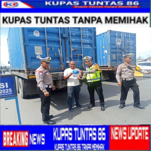 Belawan | Kupastuntas86.com – Sat Lantas Polres Pelabuhan Belawan pada Sabtu, 22 November 2025 melaksanakan kegiatan Operasi Zebra Toba 2025 di Jalan Raya Pelabuhan Belawan, tepatnya di depan Mako Polres Pelabuhan Belawan. Kegiatan ini turut menggandeng DPC Organda Angsuspel Belawan serta PT. Jasa Raharja sebagai bentuk sinergitas dalam meningkatkan keselamatan berlalu lintas di wilayah hukum Polres Pelabuhan Belawan.