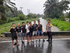 Dalam kesempatan tersebut, petugas Bhabinkamtibmas juga secara aktif memberikan himbauan kepada masyarakat agar selalu waspada terhadap kondisi banjir dan potensi bahaya di sekitar