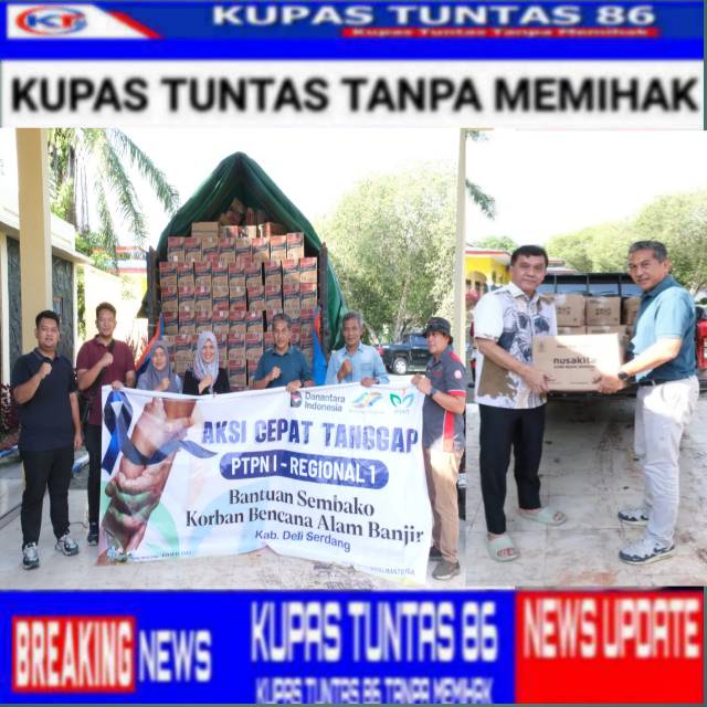 Tanjung Morawa | Kupastuntas86.com – PT Perkebunan Nusantara I (PTPN I) Regional 1, diwakili Kasubbag Kesekretariatan dan Humas PTPN I Regional 1, Bapak Rahmat Kurniawan bersama jajaran serta perwakilan Pengurus Serikat Pekerja Perkebunan Kantor Regional 1, menyalurkan bantuan sembako kepada masyarakat korban akibat terdampak bencana alam di wilayah Deli Serdang dan Kab Langkat.