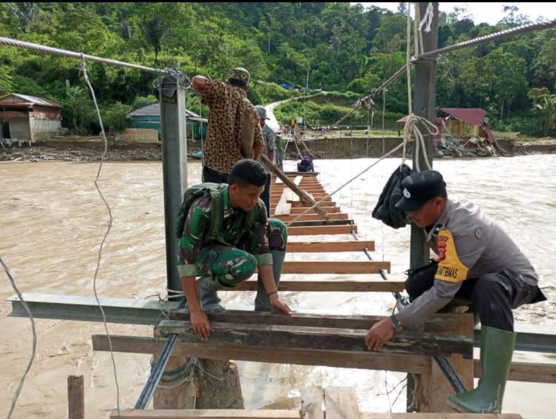 “Setelah jembatan Bailey hanyut terbawa arus, akses masyarakat benar-benar terputus. Karena itu, kami bersama Babinsa dan warga berinisiatif membangun jembatan gantung darurat agar aktivitas masyarakat tidak lumpuh total. Ini bentuk respons cepat dan pelayanan kami kepada masyarakat,” ujar AIPDA Amar.