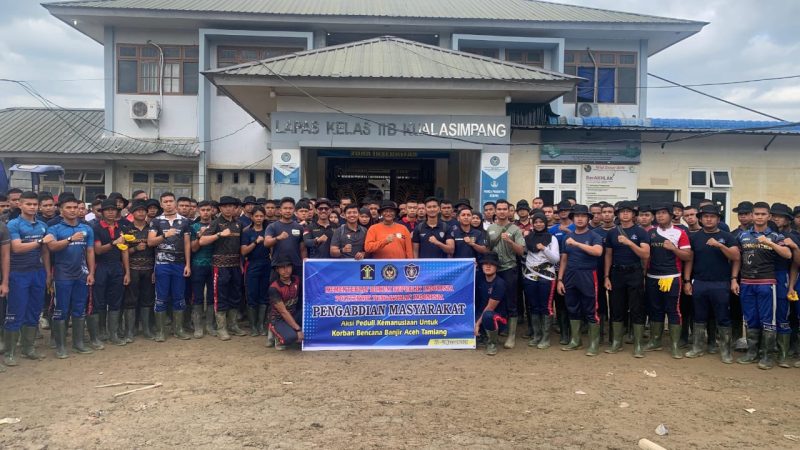 Kuala Simpang – Kantor Wilayah Direktorat Jenderal Pemasyarakatan (Kanwil Ditjenpas) Aceh memberikan apresiasi kepada Taruna Politeknik Ilmu Pemasyarakatan (Poltekip) dan Politeknik Imigrasi (Poltekim) yang melaksanakan kegiatan pengabdian kepada masyarakat di wilayah Aceh, khususnya bagi masyarakat terdampak bencana banjir.