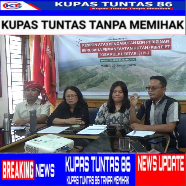 MEDAN | Kupastuntas86.com – Aliansi masyarakat yang tergabung dalam Aliansi Gerakan Rakyat Sumatera Utara (AGRESU) menggelar konfrensi pers, di kantor Sekretariat Serikat Buruh Perkebunan Indonesia (Serbundo) komplek wartawan, jalan beringin no.49, Pulo Brayan darat II Medan, Kecamatan Medan Timur Kota Medan, Kamis (29/1/2026).