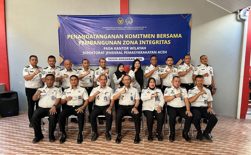 Banda Aceh – Kantor Wilayah Direktorat Jenderal Pemasyarakatan (Ditjenpas) Aceh menunjukkan keseriusan dalam mewujudkan reformasi birokrasi yang bersih dan melayani di tanah Serambi Mekkah. Langkah ini diawali dengan prosesi penandatanganan Piagam Komitmen Bersama Pembangunan Zona Integritas (ZI) menuju WBK dan WBBM, Selasa (03/02/2026).