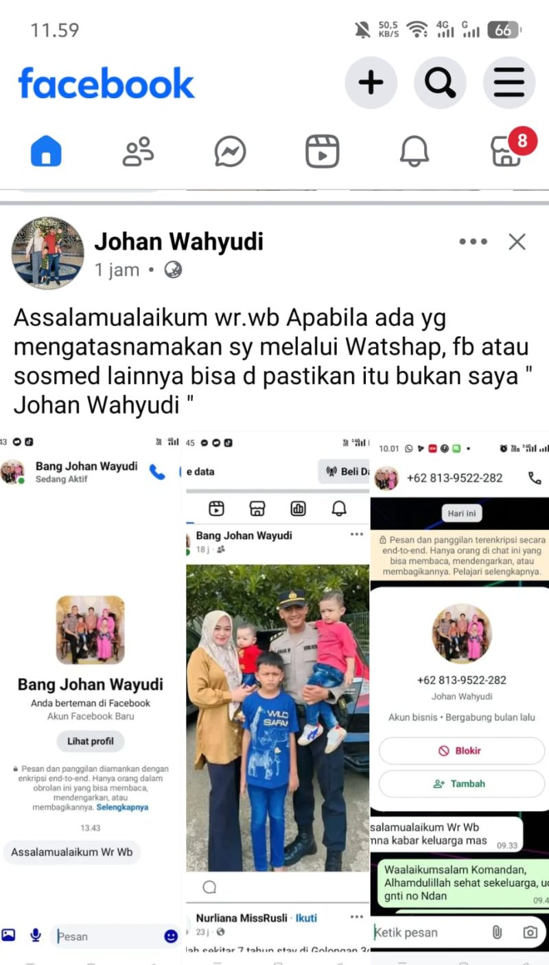 Menanggapi hal itu, IPDA Johan Wahyudi menegaskan,di foto profil Facebook yang mengatasnamakan bukanlah dirinya.