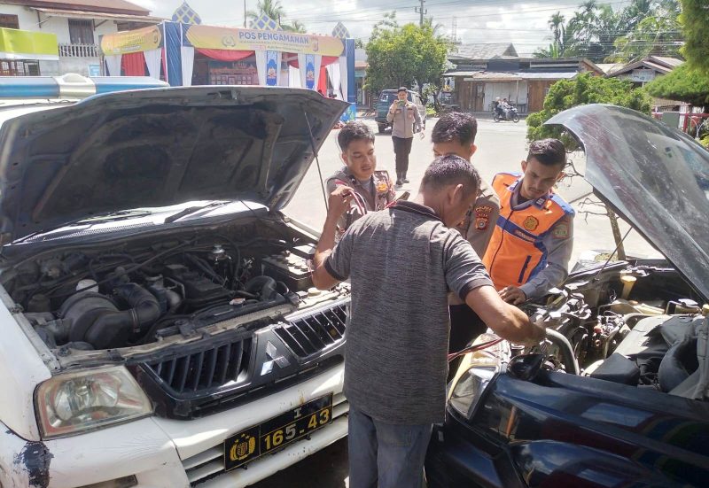 Respon Cepat Personel Pos Pam Operasi Ketupat Seulawah Polres Aceh Timur Saat Melihat Kendaraan Warga Mogok
