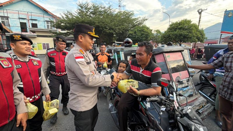 Kapolres Aceh Tenggara Bersama PJU Bagikan Takjil kepada Tukang Becak dalam Rangka HUT Korps Sabhara ke-74