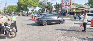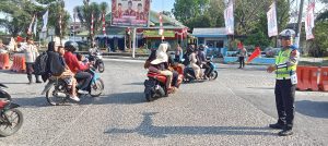 Seluruh personel yang bertugas di Pos Pengamanan terus melakukan pemantauan dan pengaturan lalu lintas guna memastikan keamanan, keselamatan, ketertiban, dan kelancaran arus kendaraan.