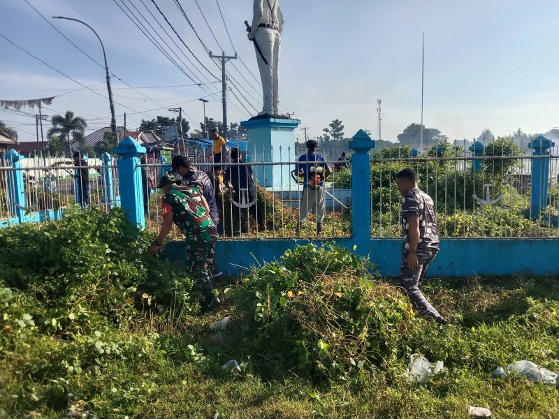 Dengan penuh semangat Personel Koramil 04 bersama dengan warga Galesong bergotong royong melaksanakan pembersihan lingkungan dimulai dari membersihkan sampah-sampah dan rumput liar di pinggir lapangan Larigau pengangkatan tanah dari selokan.