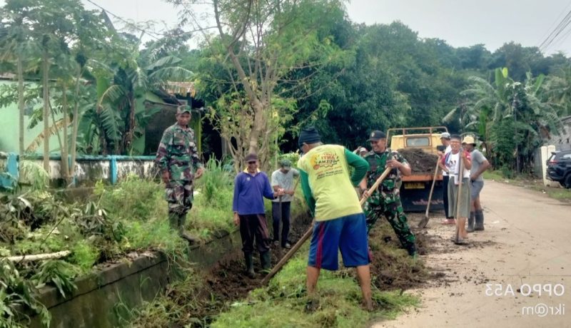 Personel Koramil 1426-02/Polsel Bersama Warga Gelar Kerja Bakti Bersihkan Saluran Air