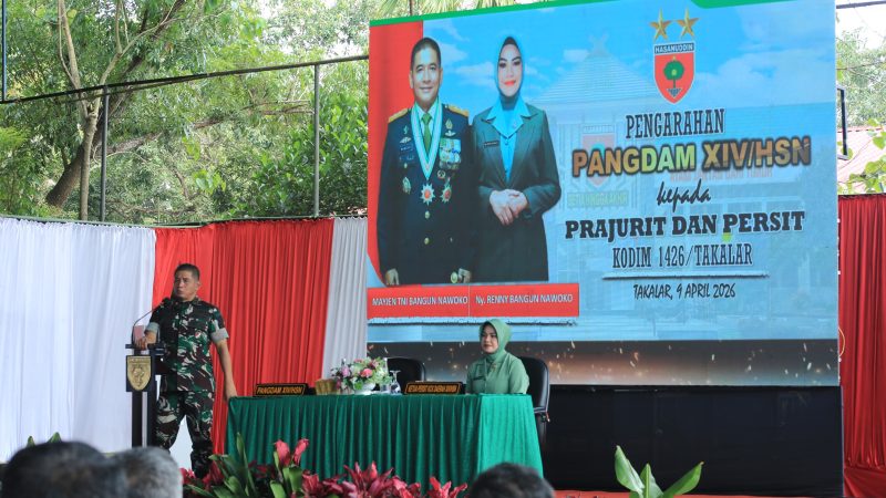TAKALAR – kupastuntas86.com|Panglima Kodam XIV/Hasanuddin, Mayjen TNI Bangun Nawoko, bersama Ketua Persit Kartika Chandra Kirana PD XIV/Hasanuddin, Ny. Renny Bangun Nawoko, melaksanakan kunjungan kerja di Makodim 1426/Takalar, Kelurahan Kalabbirang Kecamatan Pattalassang Kabupaten Takalar, Kamis (09/04/2026).