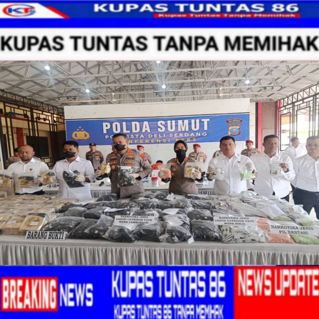 DELI SERDANG | Kupastuntas86.com – Komitmen Polresta Deli Serdang dalam memberantas peredaran gelap narkotika kembali membuahkan hasil fantastis. Dalam sebuah operasi penyergapan yang dramatis di Pintu Keluar Tol Lubuk Pakam, petugas berhasil menggagalkan pengiriman puluhan kilogram sabu, ribuan butir ekstasi, hingga narkotika jenis baru yang dikemas dalam liquid vape dan happy water senilai total Rp 57,2 miliar.
