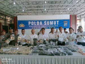 Kapolresta Deli Serdang, Kombes Pol Hendria Lesmana, SIK, M.Si., didampingi Waka PolrestaAKBP Juliani Prihartini, SIK, MH, dan Kasat Narkoba Dr. Fery Kusnadi, SH, MH, memaparkan langsung keberhasilan ini dalam konferensi pers yang digelar pada Senin, 27 April 2026.