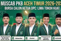 Aceh Timur– Sebanyak lima nama calon Ketua DPC Partai Kebangkitan Bangsa (PKB) Kabupaten Aceh Timur resmi diusulkan ke Dewan Pimpinan Pusat (DPP) PKB dalam…
